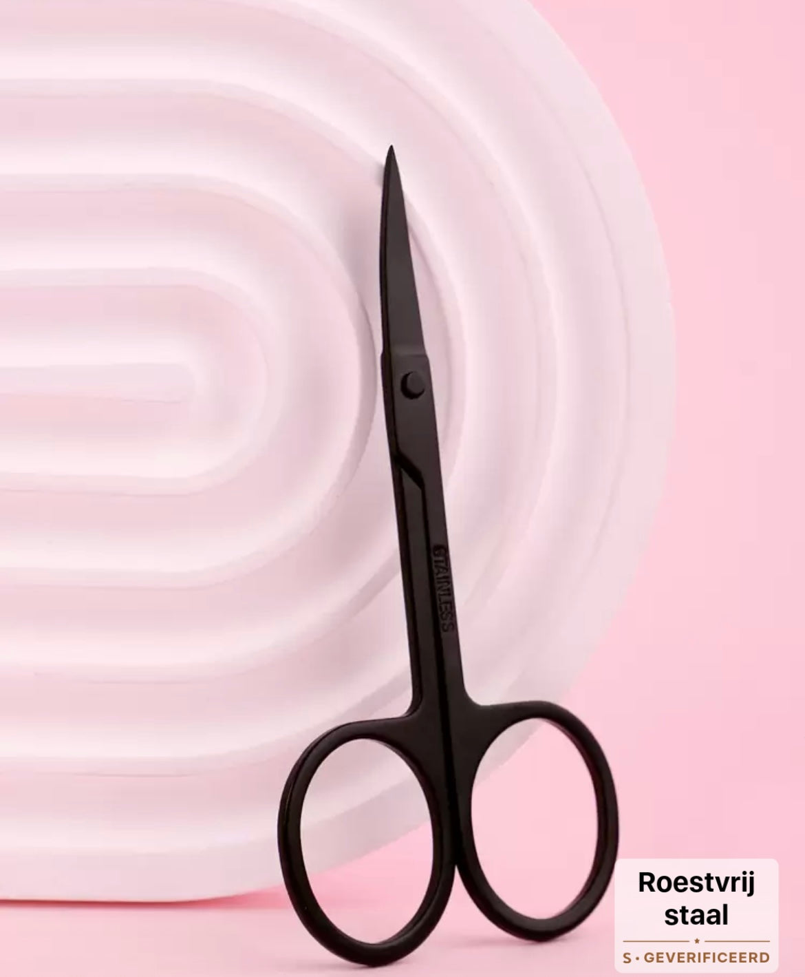 Handig klein zwart, roestvrij schaartje om de wenkbrauwhaartjes mee in vorm te knippen.